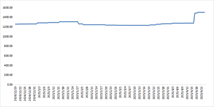 卓创资讯数据显示,截至2025年4月24日,全国冷库库存比例约为18.45%,较上周(4月17日)降低3.23个百分点。