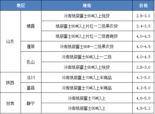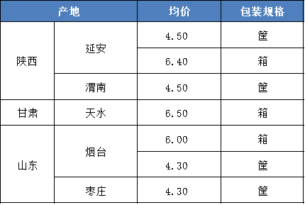 表 3部分主产区苹果价格汇总(4.24) 单位:元/斤