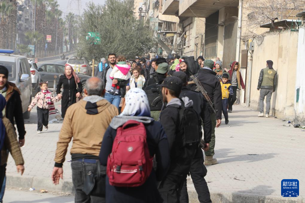 1月8日,在叙利亚阿勒颇市,民众逃离冲突区域。新华社发