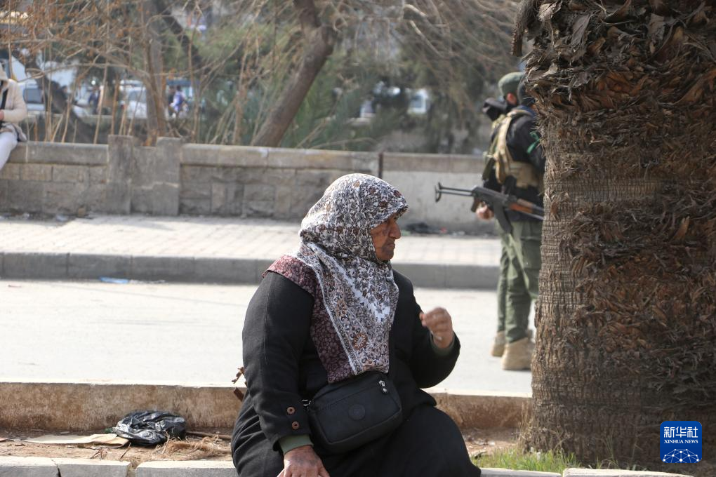 1月8日,在叙利亚阿勒颇市,一名逃离冲突区域的妇女坐在路边。新华社发