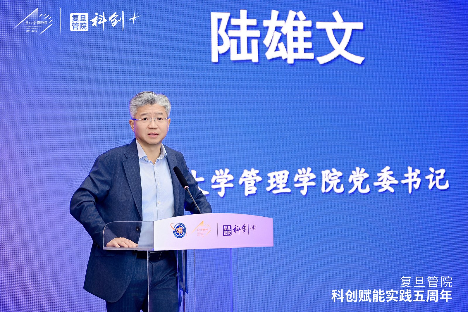 在复旦管院科创赋能实践五周年开幕式上,复旦大学管理学院党委书记陆雄文教授表示: