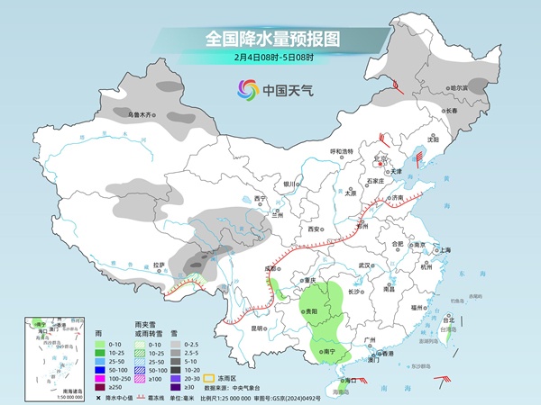 降水方面,未来三天,我国中东部地区降水比较稀少,雨雪天气将主要出现在新疆、西藏、青海、四川等地。