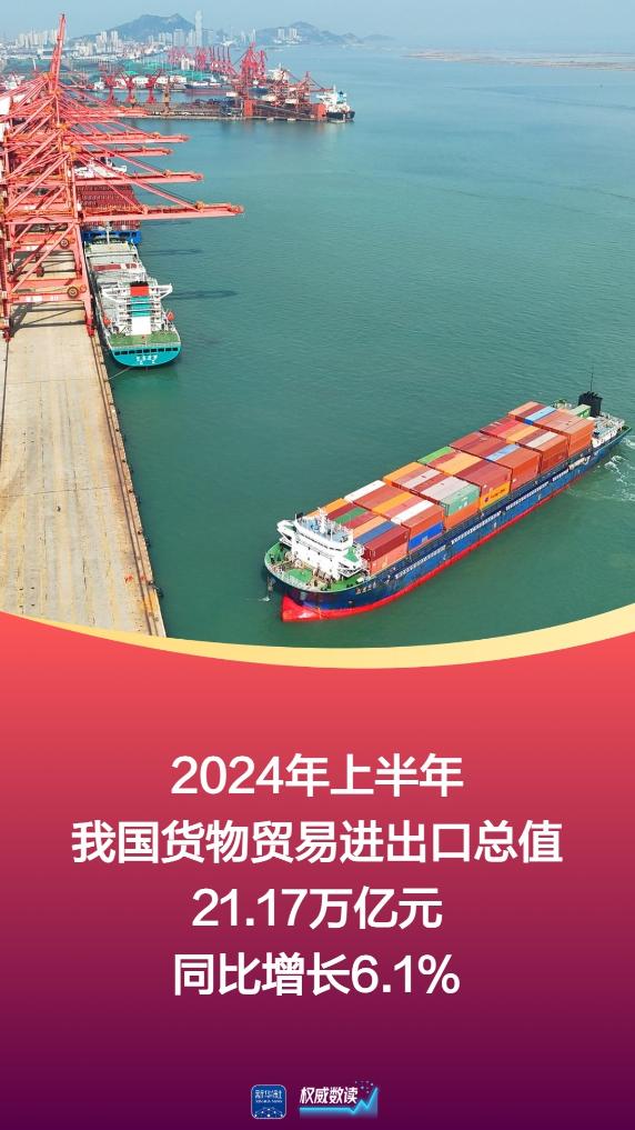据海关统计,上半年,我国进出口规模历史同期首次超过21万亿元;进出口增速逐季加快,二季度增长7.4%,较一季度和去年四季度分别高2.5个、5.7个百分点,外贸向好势头得到进一步巩固。