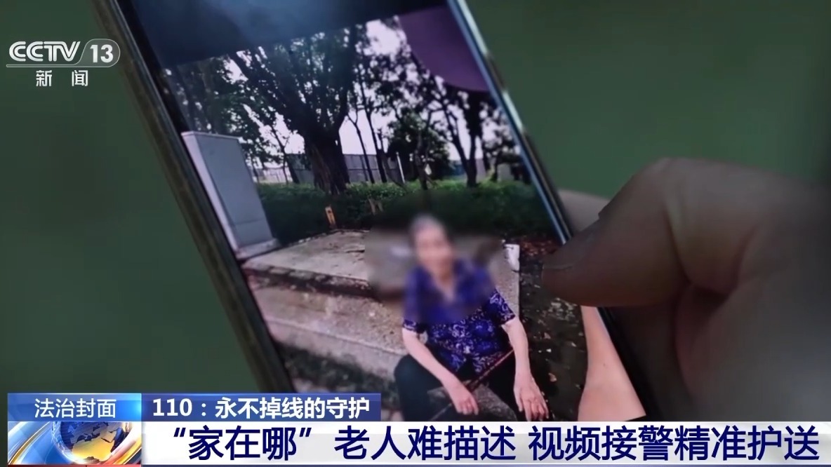 视频接通的瞬间,老人清晰的面容、身上的蓝色碎花衬衫以及周边的交通标识,已实时传输至深圳市公安局情报指挥中心的屏幕上。经过调查,民警掌握了走失老人的身份。与此同时,路面警力已接收到指令与信息,迅速赶往现场。