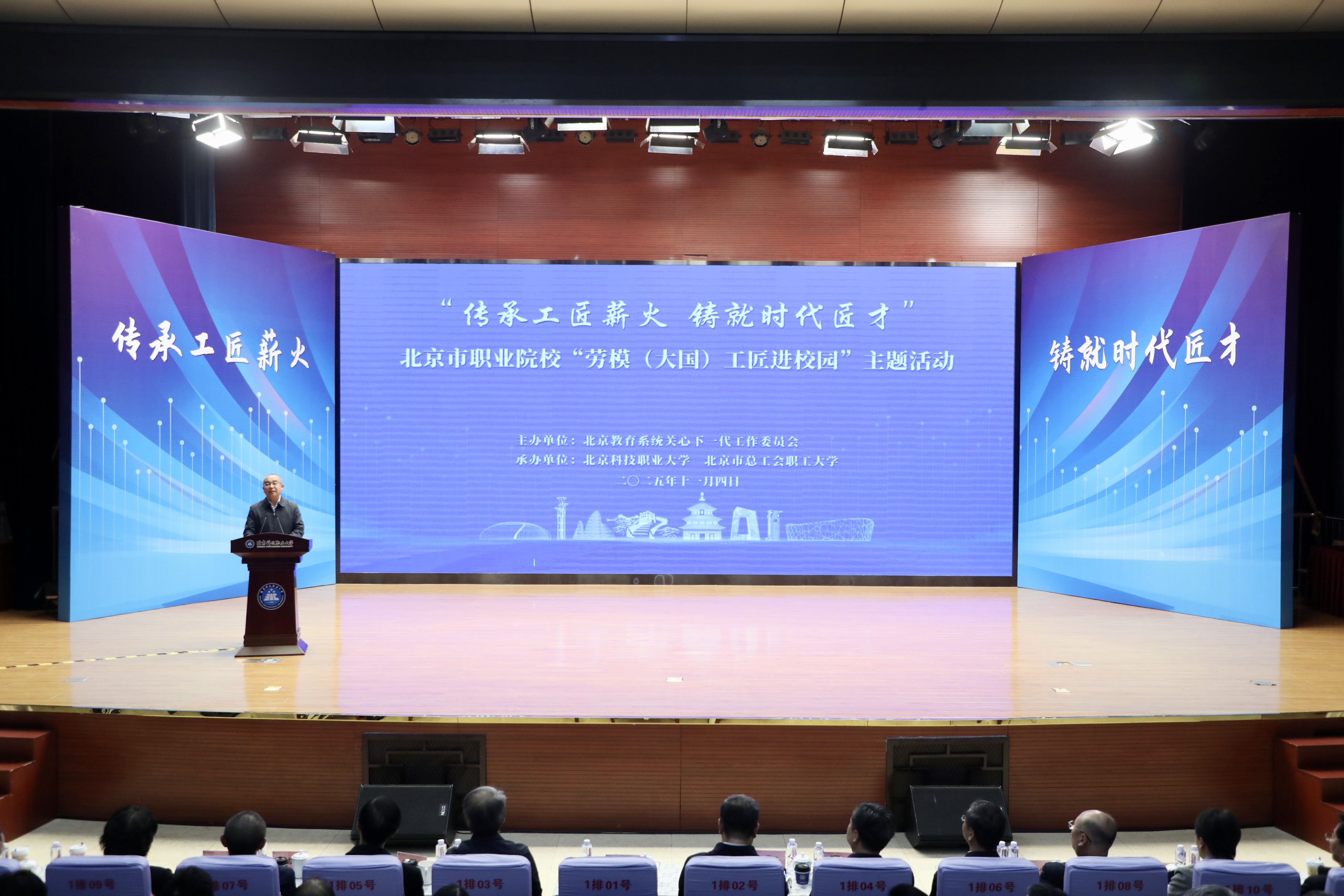 11月4日,“传承工匠薪火 铸就时代匠才”北京市职业院校“劳模(大国)工匠进校园”主题活动在北京科技职业大学举行。活动由北京教育系统关心下一代工作委员会主办,北京科技职业大学、北京市总工会职工大学承办,北京市关工委副主任、北京教育系统关工委主任张雪主持。