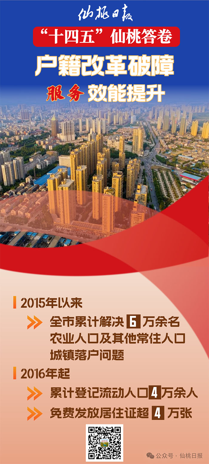 2015年以来,全市累计解决6万余名农业人口及其他常住人口城镇落户问题。2016年起,全面推行居住登记制度,累计登记流动人口4万余人,免费发放居住证超4万张,持证人可平等享受子女教育、医疗保障等9项公共服务及7项便利措施。通过落实“一次性告知”“一次办成”制度,深化“互联网+户政”改革,147项高频户籍业务实现“一网通办”,年均线上解答群众咨询2000余人次、办理业务1500余笔,让数据多跑路、群众少跑腿。