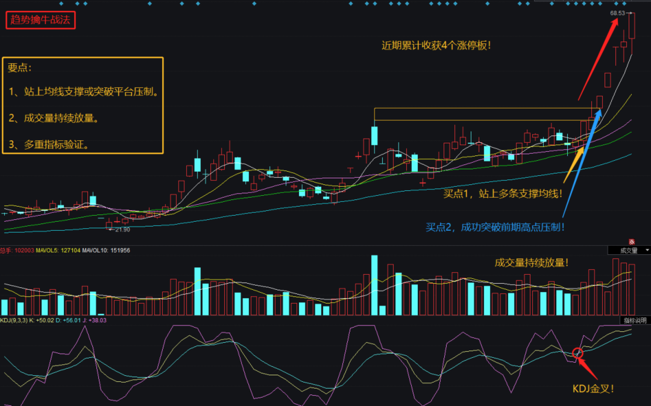 上一期和大家分享了趋势擒牛战法入门及实战,在实战中市场千变万化,为帮助投资者进一步掌握趋势擒牛战法的应用,今天我们就继续了解趋势擒牛战法(二)。