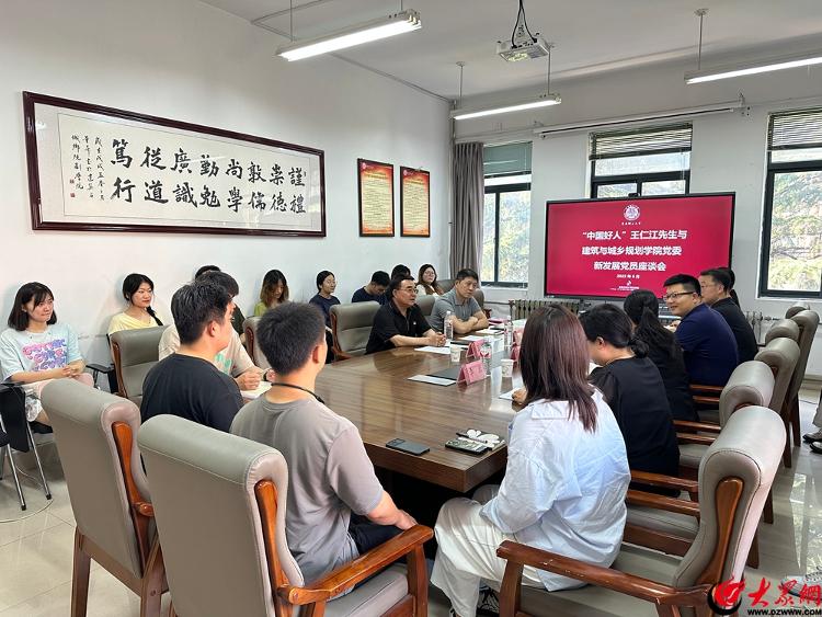 6月30日,青岛理工大学建筑与城乡规划学院党委在建筑馆301举办“赓续红色基因·践行奋斗报国”新发展党员座谈会。“中国好人”、山东省道德模范、学院校外兼职辅导员王仁江同志与2025年新发展党员围坐一堂,为新党员扣好政治生涯“第一粒扣子”,座谈会由学院党委书记吕楠主持。