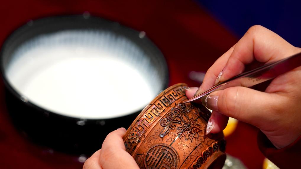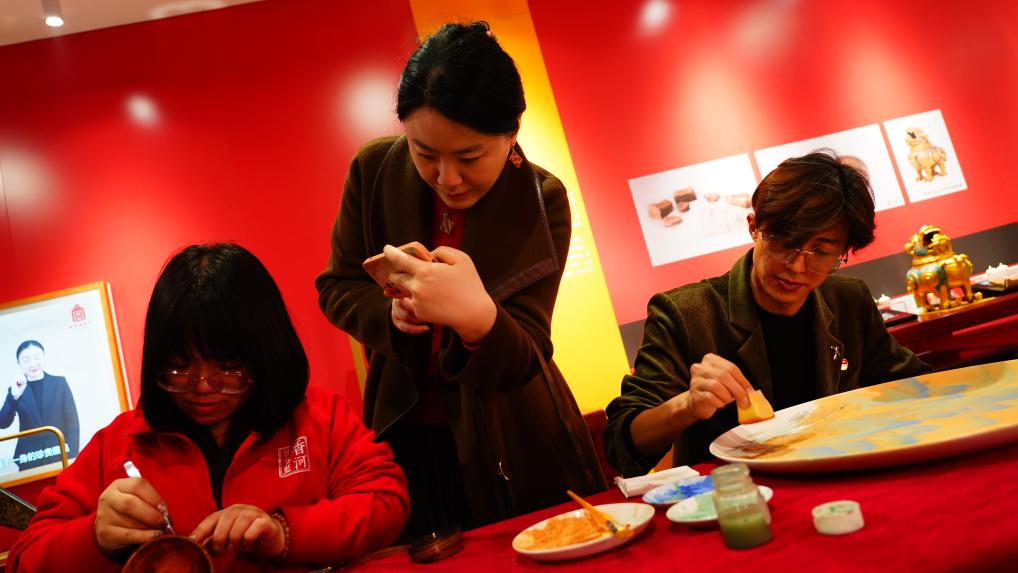 3月26日,残疾人手工艺人现场展示非遗技艺。