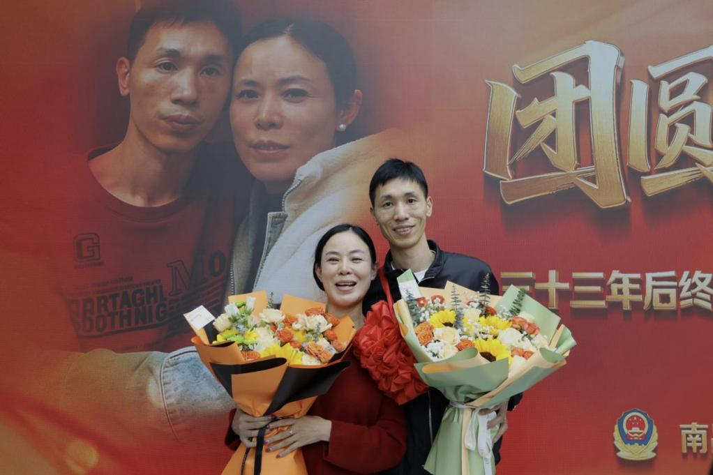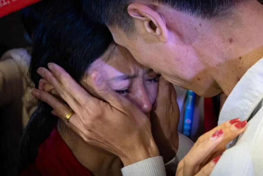 图为认亲现场,姐姐李林紧紧抱住失散33年的弟弟李鑫。