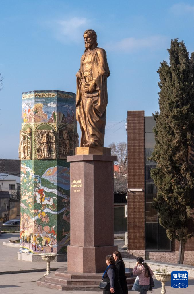 这是3月23日在阿塞拜疆甘贾拍摄的阿塞拜疆诗人尼扎米的雕塑。新华社记者 陈俊锋 摄