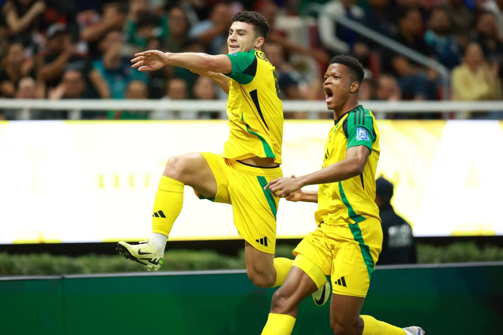 牙买加队球员卡达马特里(左)在进球后庆祝。图片来自国际足联官网