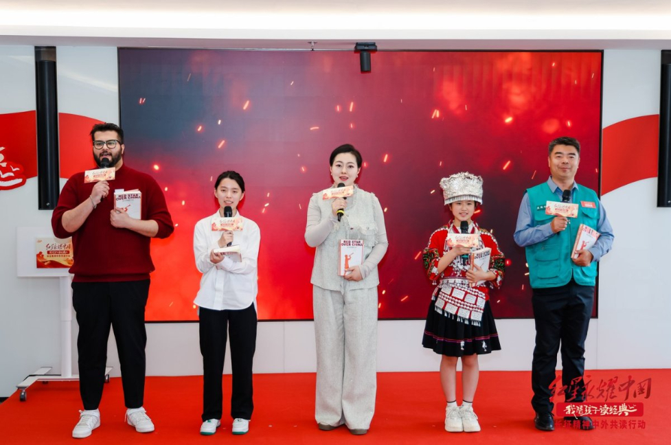 现场,随着书声琅琅,社会各界人士携手学生代表同台共读《红星照耀中国》《长征》等精彩选段,滚烫的红色信仰,在多语种交织的诵读声中悄然流淌;距北京千里之外,被誉为长征“加油站”的甘肃省哈达铺镇,一场温馨的阅读接力上演。