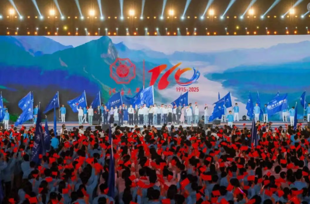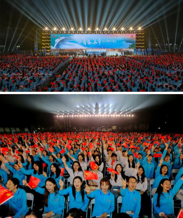 舞台下,6000余名师生齐声高唱校歌,共同许下青春诺言:如水赴壑、奔流四方,到祖国需要的地方去!