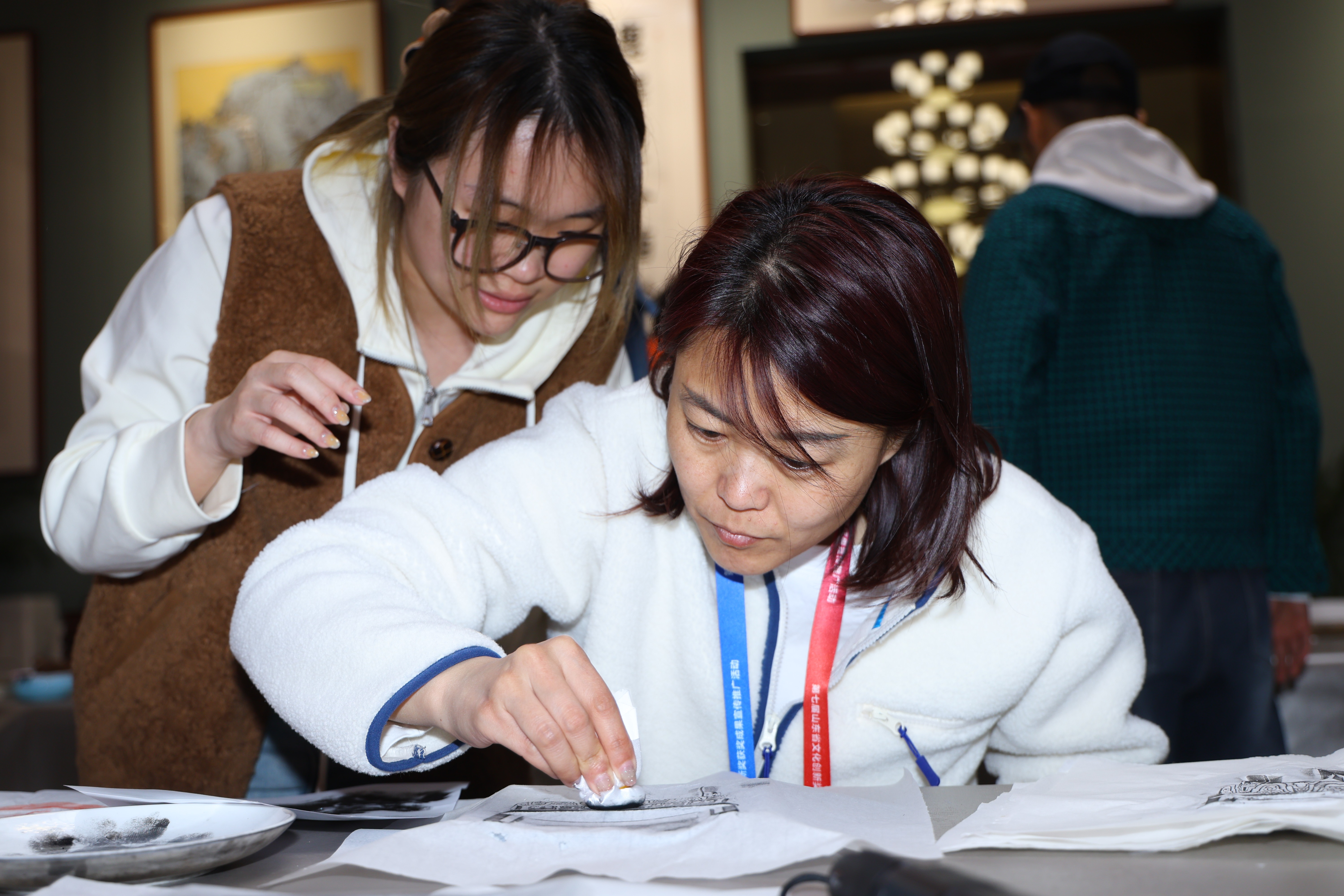 游客在体验拓印和潍坊风筝扎制 赵 森 摄