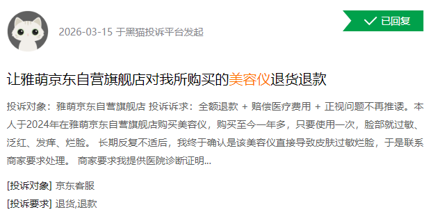 近期,黑猫投诉平台上部分对家用美容仪的投诉。