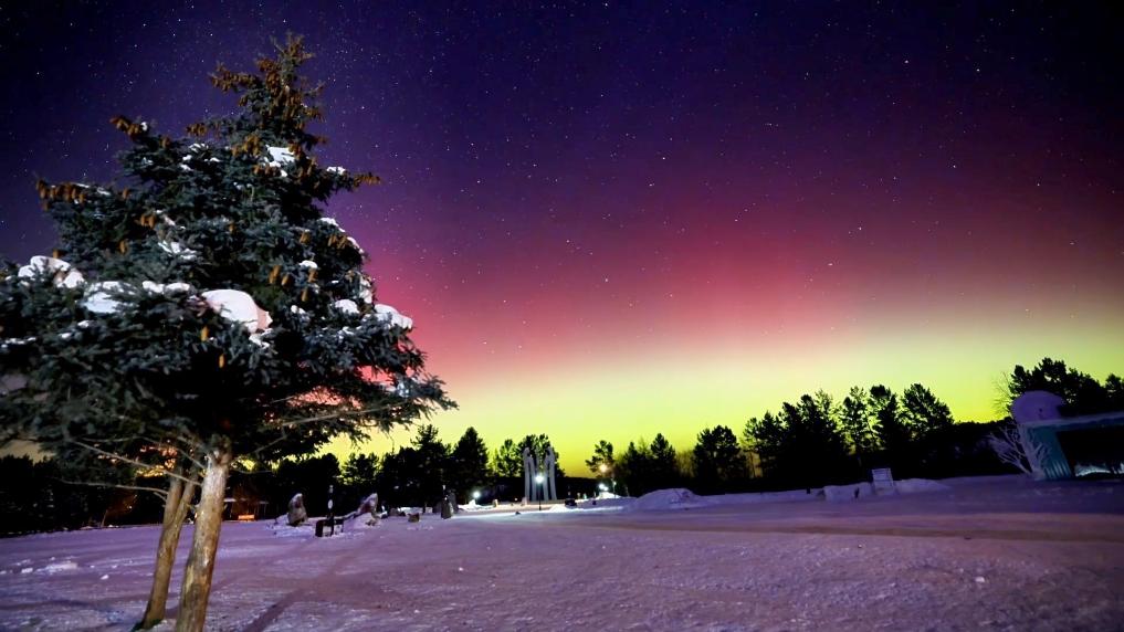 近日,在素有“极光之城”之称的黑龙江省大兴安岭地区漠河市,出现了红绿极光美景,吸引大批游客踏雪追光。