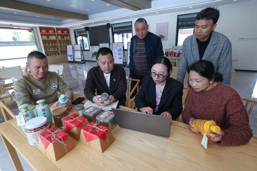 4月1日,安华镇包村干部和丰江周村村干部在共富工坊商讨红糖生产计划,提出包装改进建议。