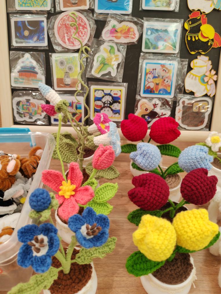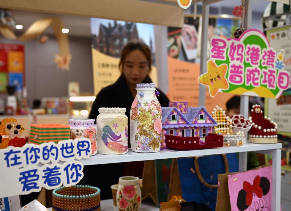 2025年12月24日,上海市女性社会组织嘉年华活动现场展示的孤独症儿童及其家庭制作的手工艺品。 新华社记者 刘颖 摄