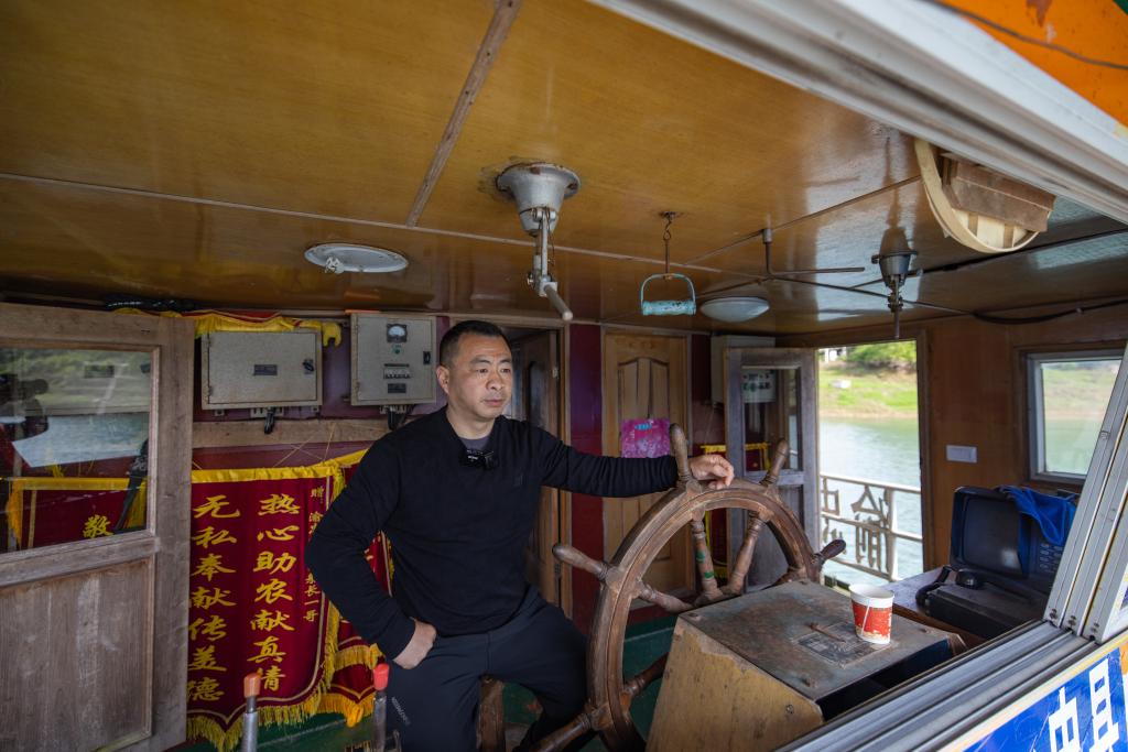 3月30日,被网友称为“背篓轮渡”的“渝忠客2180”客船缓缓靠近重庆忠县洋渡码头。驾驶舱里,船长秦大益手握舵轮,泪水打湿了眼眶,这是他最后一次和这位“老伙计”合作。