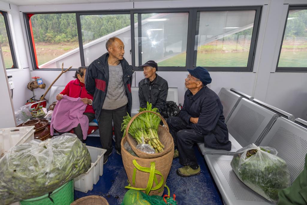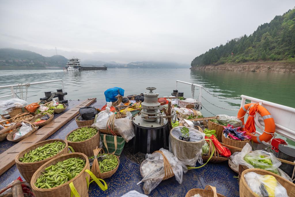 3月31日,在长江重庆忠县段,菜农搭乘“新渝忠客2180”客轮前往县城。