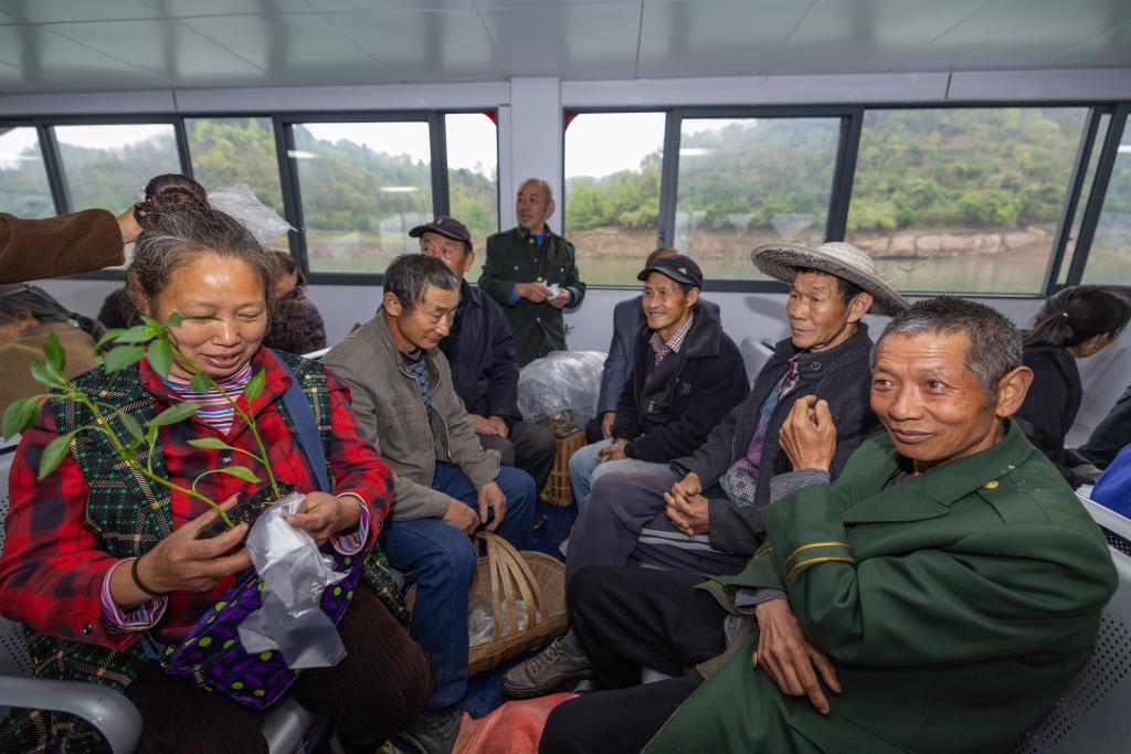 3月31日,在长江重庆忠县段,菜农在志愿者的帮助下登上“新渝忠客2180”客轮。