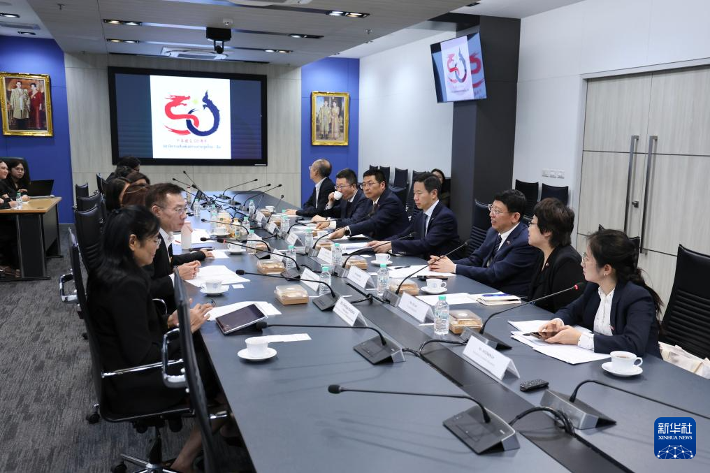 4月1日,中国政法大学代表团在位于曼谷的泰国高等教育科研与创新部开展交流活动。新华社记者 孙玮彤 摄