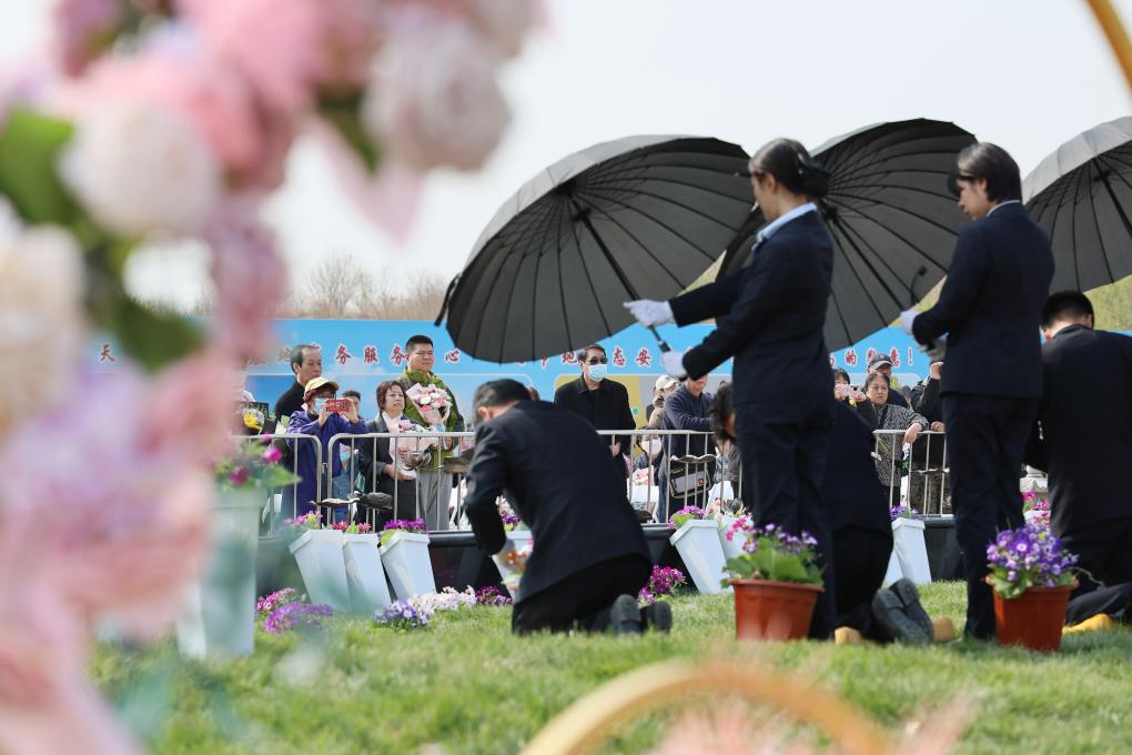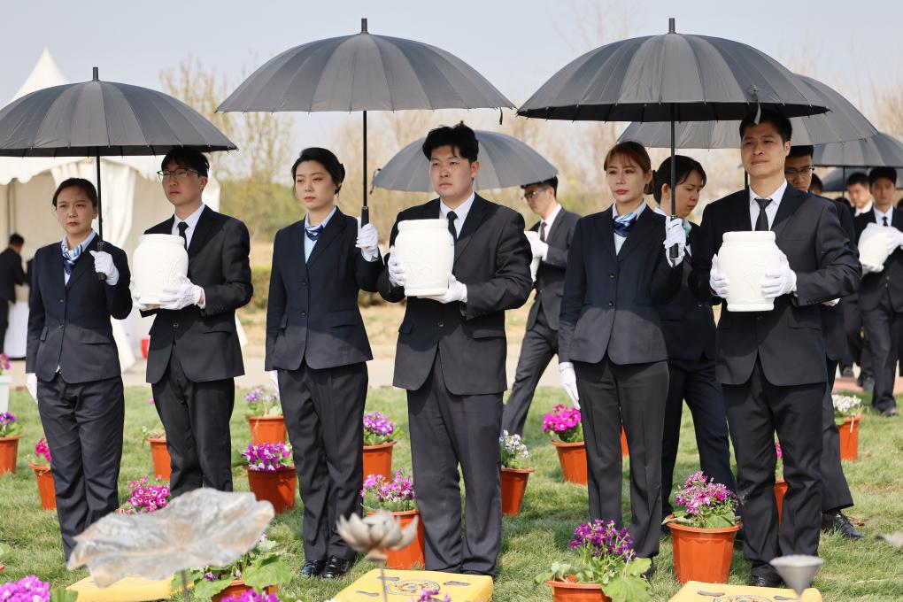 4月2日,礼仪人员在活动现场进行安葬仪式。