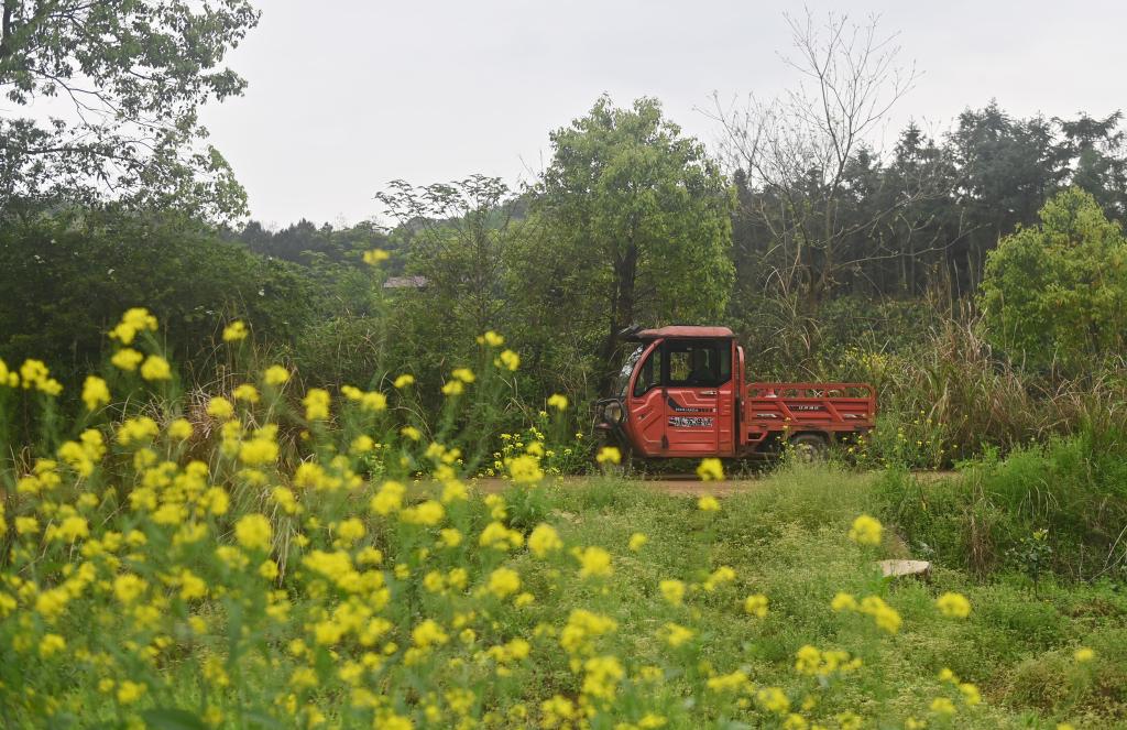 4月2日,在广西全州县才湾镇才湾村,蒋石林老人开着三轮车去祭奠红军烈士。
