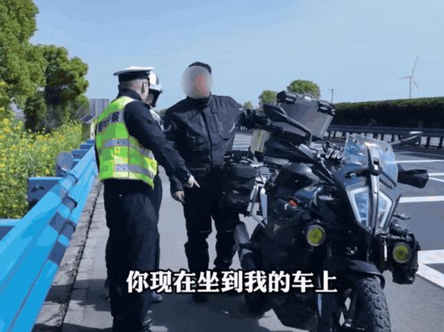 两人立即拉响警笛 示意车辆靠边 “您好,高速公路上摩托车不能载人 请靠边停车”