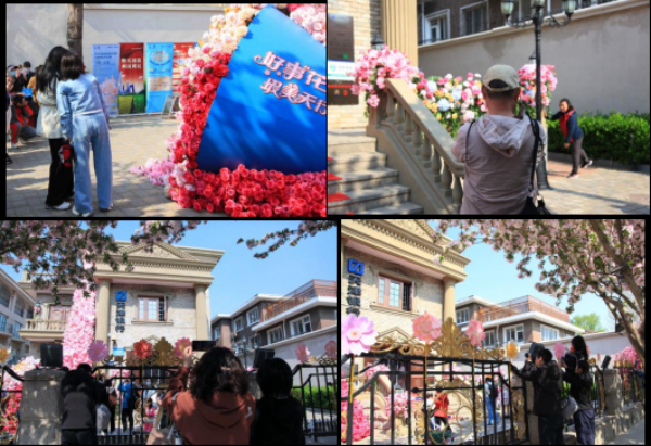 近日,天津市和平区大理道人流涌动,花香扑鼻。天津银行大理道支行吸引了不少人群前来拍照。