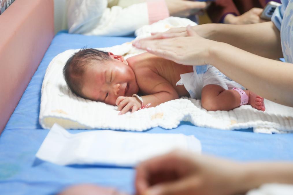 4月7日,湖南省衡阳县妇幼保健院工作人员在指导家长进行婴幼儿推拿按摩保健。
