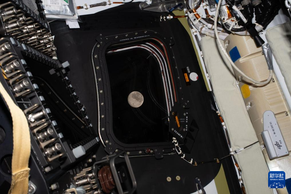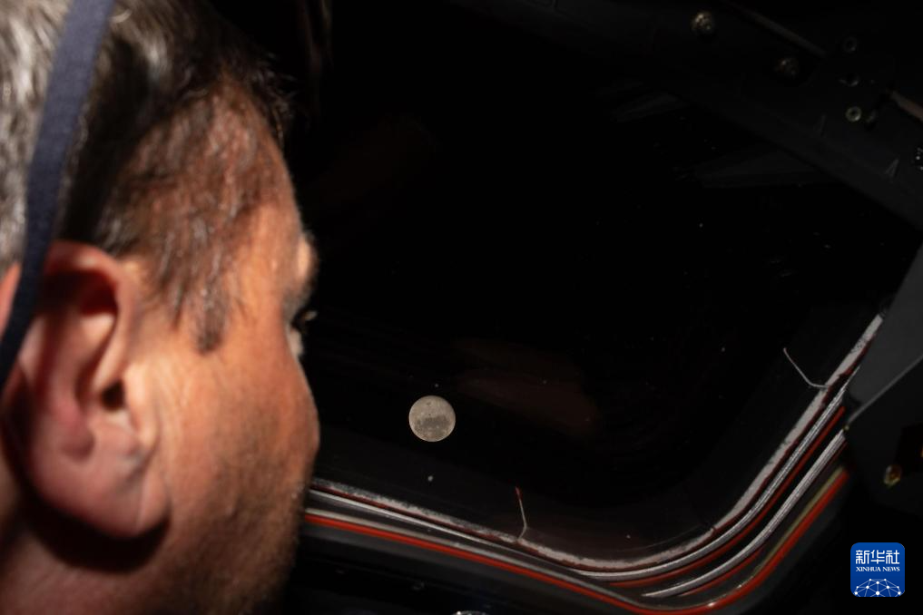 4月6日,美国航空航天局宇航员里德·怀斯曼从执行“阿耳忒弥斯2号”载人绕月飞行任务的“猎户座”飞船上观看月球。新华社发(美国国家航空航天局供图)