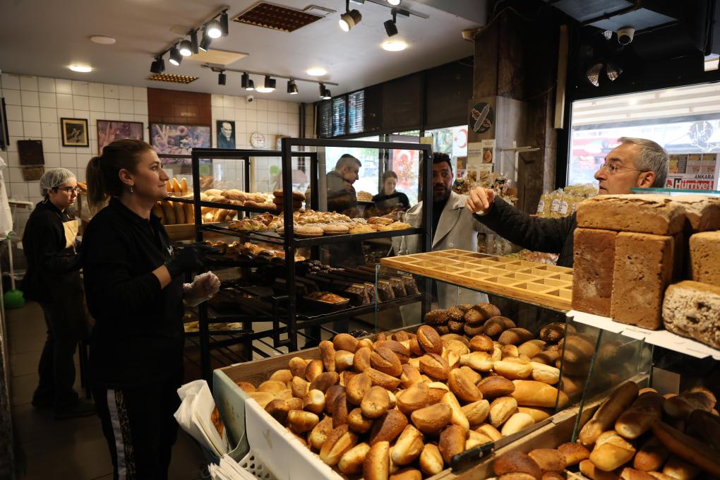 4月2日,人们在土耳其安卡拉艾兰哲社区的尼梅特面包店购买面包。新华社发 穆斯塔法·卡亚摄