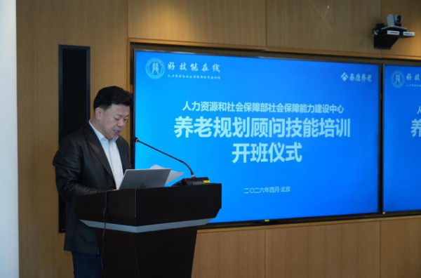 4月7日,人力资源和社会保障部社会保障能力建设中心(以下简称“人社部能建中心”)2026年度“养老规划顾问”技能培训开班仪式举办。人社部能建中心有关领导、承办单位北京中民养老事业促进中心相关负责人、参训单位泰康养老保险股份有限公司(以下简称“泰康养老”)代表、养老服务领域行业专家及参训学员代表齐聚现场,共同开启养老规划顾问专业技能人才培养的新征程。开班仪式由北京中民养老事业促进中心主任苏博主持。