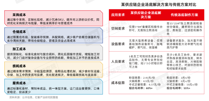 供应链企业通过深度理解客户的门店运营、后厨加工、人力配置、损耗管理等全链路场景,提供定制化解决方案,帮助客户降低采购、仓储、加工、人力、损耗等综合成本,而非仅比拼单品单价。