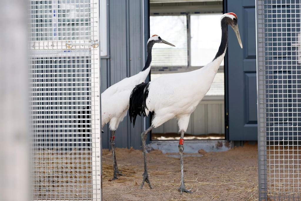 4月9日,8对国家一级保护野生动物丹顶鹤跨越千里,从黑龙江扎龙国家级自然保护区运抵宁夏青铜峡库区湿地自然保护区,开启了黄河流域丹顶鹤种源迁地繁育新篇章。