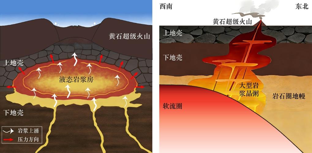 岩石圈是地球最外层的坚硬圈层,其下方的地幔温度较高,粘度较低,在地质时间尺度上可缓慢流动,被称为软流圈。近年研究表明,超级火山的岩浆主要源自部分熔融的软流圈物质,然而其岩浆形成和迁移的内在驱动机制至今仍不清楚,成为当前超级火山机制研究面临的核心问题。
