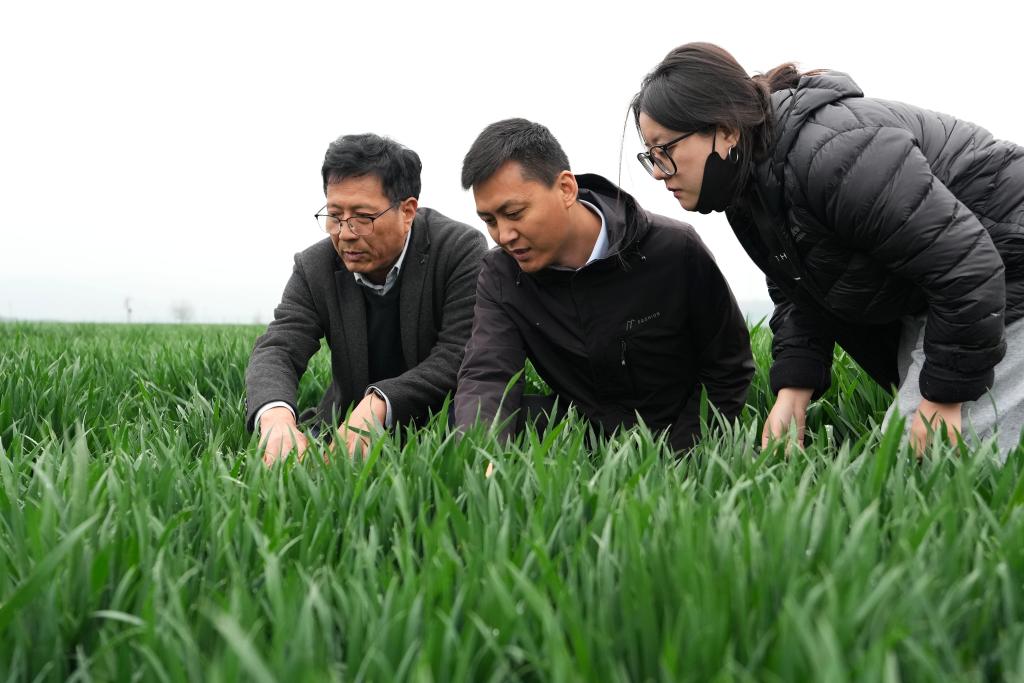 新华社西安4月10日电(记者姚友明、李一博、赵英博)眼下,正值我国北方冬小麦拔节期。西北农林科技大学陇县小麦科技小院负责人张超正和学生张玉珍一起在试验田里,密切关注着百余个冬小麦品种(系)的生长情况。