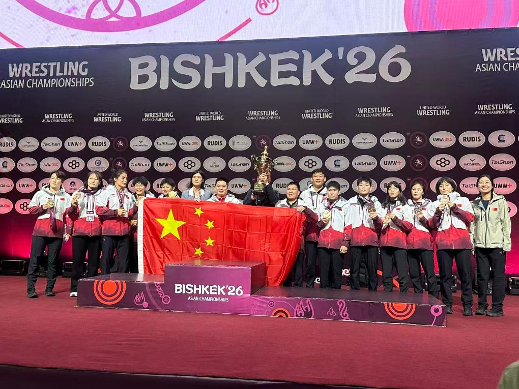 新华社北京4月10日电(记者王楚捷)据世界摔联官网消息,2026亚洲摔跤锦标赛10日在吉尔吉斯斯坦首都比什凯克迎来女子自由式摔跤收官日,中国队当日再斩获4金1铜,以总成绩5金1银4铜收官,并夺得团体积分总冠军。