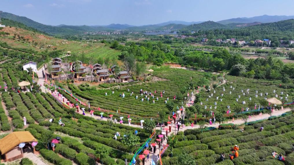 在孝昌县周巷镇,游客在茶农指导下,戴上斗笠、挎上茶篮,体验新茶采摘;乡村草坪上,三五成群的年轻游客或露营野炊,或嬉戏游玩,或捧着乡村咖啡,近赏繁花似锦,远眺茶山青翠,尽享惬意田园时光。