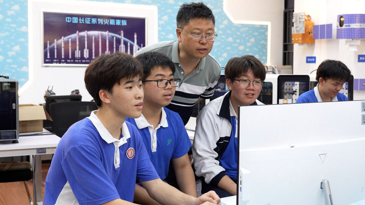 ↑2025年4月21日,在深圳格致中学开展“天问·问天——深空探测漫谈”主题科普讲座,教员指导学生利用ATK软件测算天宫空间站过境的时间窗口。(新华社发 桑艳摄)