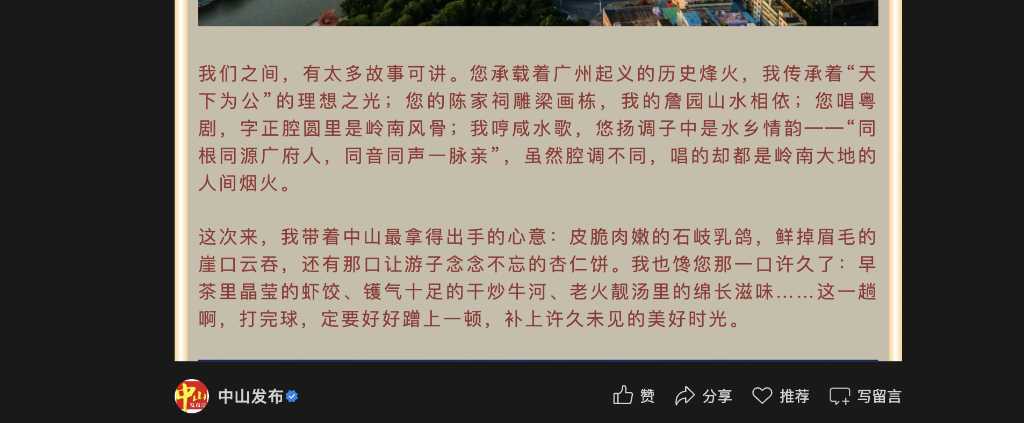 “我带着中山最拿得出手的心意: