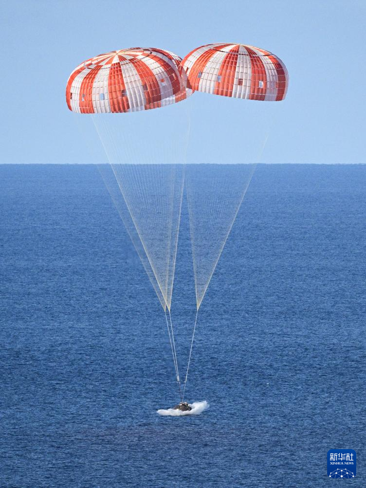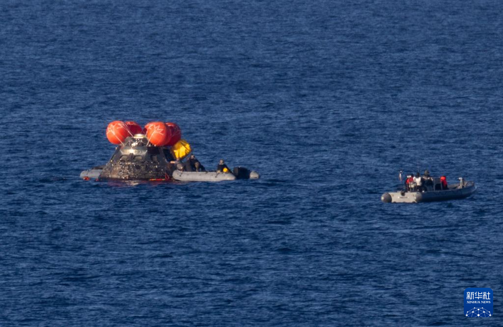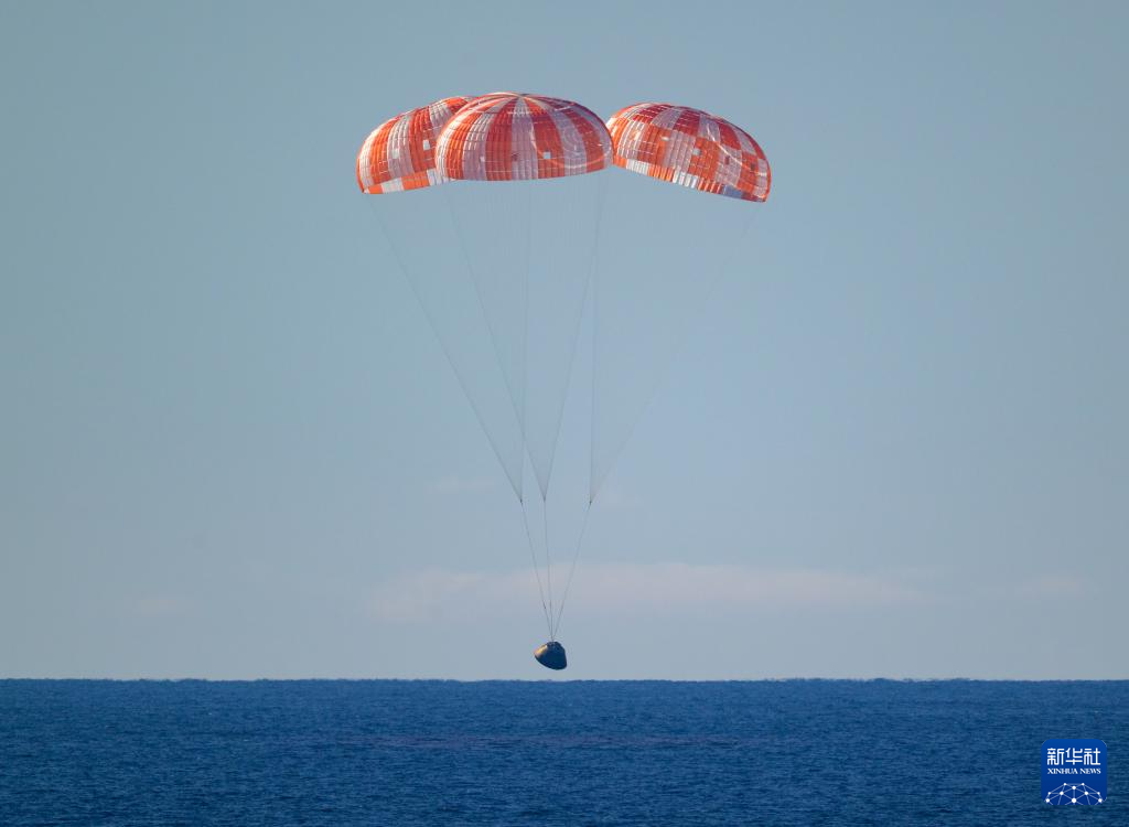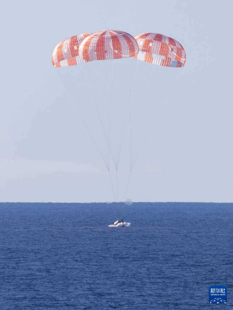 新华社洛杉矶4月10日电(记者高山)执行美国“阿耳忒弥斯2号”载人绕月飞行任务的“猎户座”飞船返回地球,于美东时间10日20时07分(北京时间4月11日8时07分)溅落在加利福尼亚州圣迭戈附近海域。