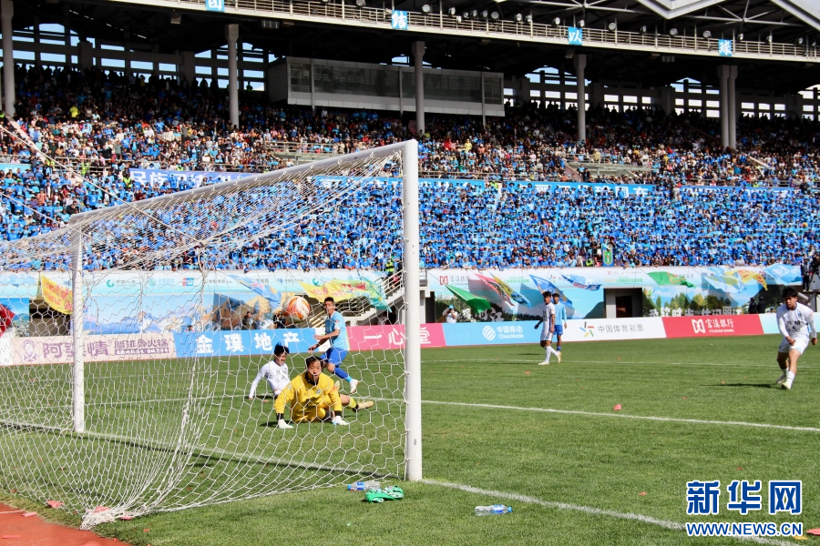 丽江队进球瞬间(4月11日摄)。新华网发