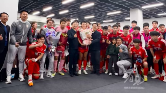 据“常州发布”微信视频号,常州市委书记王剑锋、市长周伟在赛后第一时间为球员和教练送花祝贺。
