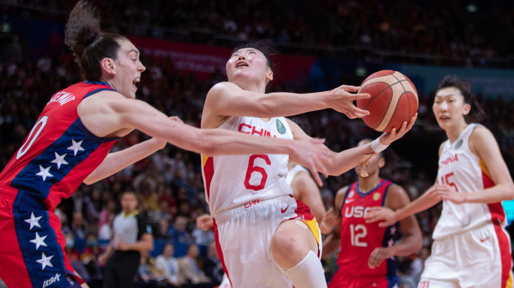 2022年10月1日,武桐桐(左二)在女篮世界杯决赛中。新华社发(胡泾辰摄)