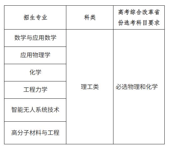 我校强基计划招生专业及高考综合改革省份选考科目要求如下: