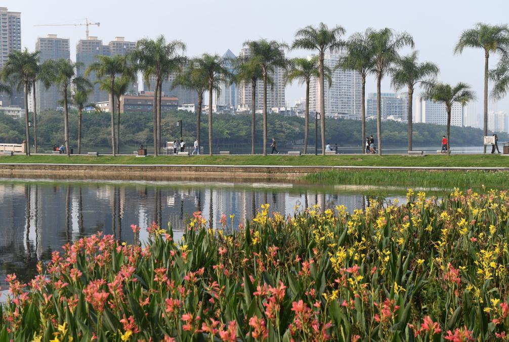 这是南宁市南湖边盛开的鲜花(2019年12月17日摄)。