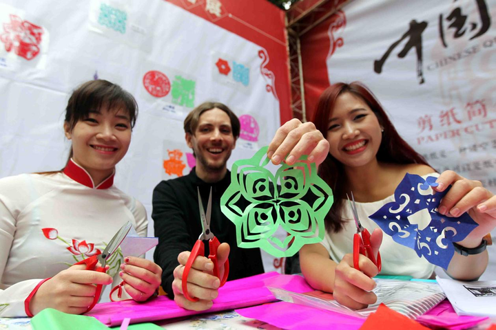 西南大学留学生在国际文化节体验中国传统文化。受访者供图